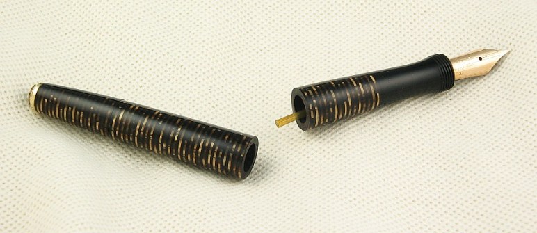 Folks, I don’t want to insult anyone, but it is a disgraceful engineering decision to succumb to a superficial desire for a bit of flash and as a result trade off durability. There’s a reason that for a hundred years, no quality fountain pen had a plated trim ring located at the front of the gripping section where the base metal would unstoppably fall victim to chemical attack from ink. Not until a later version of the Parker 75 did such a “feature” appear on a quality fountain pen, to my knowledge (think about it). The change to the 75 I consider a simple misjudgment, but on modern pens, where the lesson has long been known, it is inexcusable.